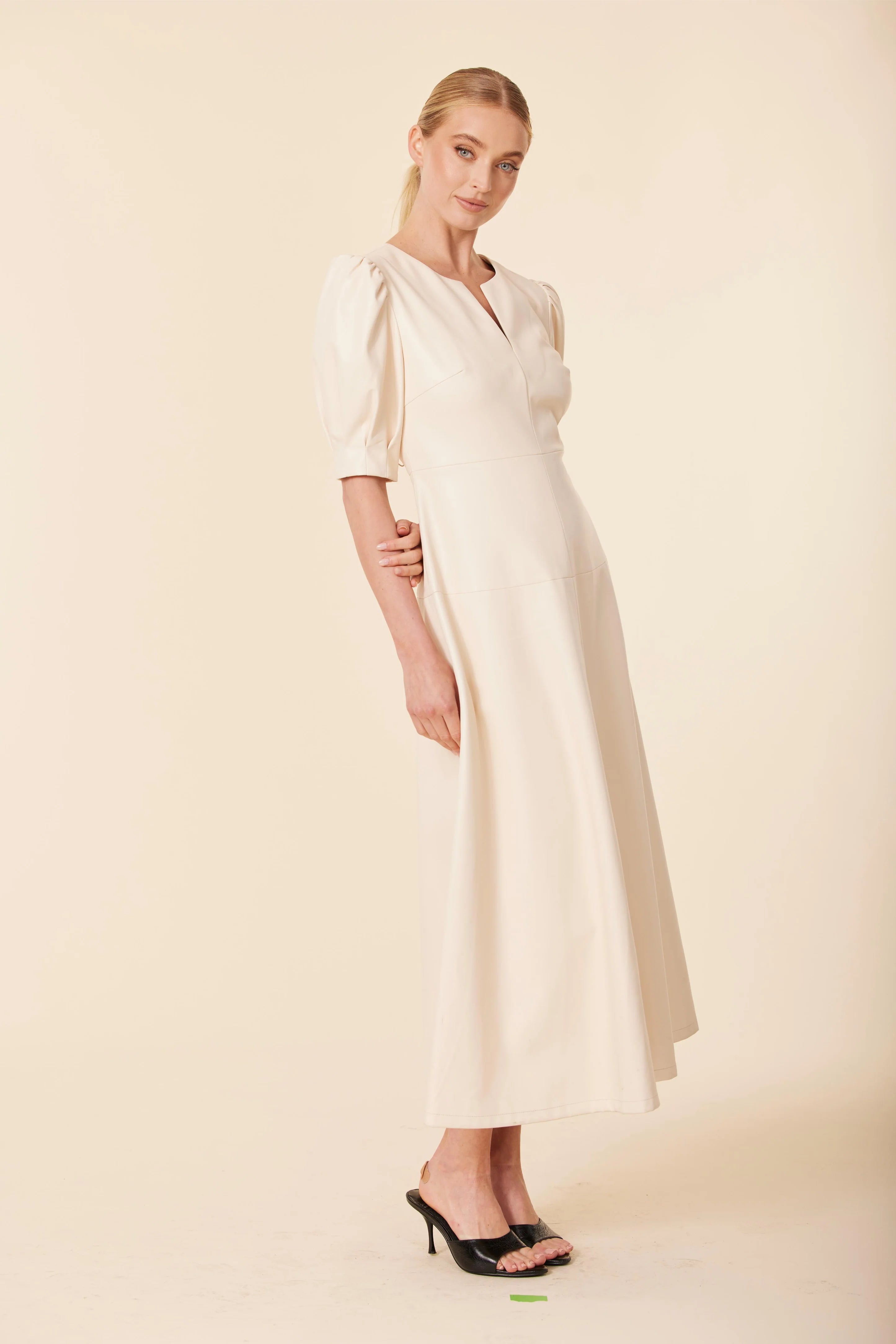 Make a bold style statement this season with the Dolce Cabo Faux Leather Maxi Dress, a sophisticated women’s fall fashion essential. Designed in a luxurious vegan leather with a soft sheen, this maxi dress features dramatic puff sleeves, a sleek V-notch neckline, and a flowing A-line silhouette that flatters every figure.