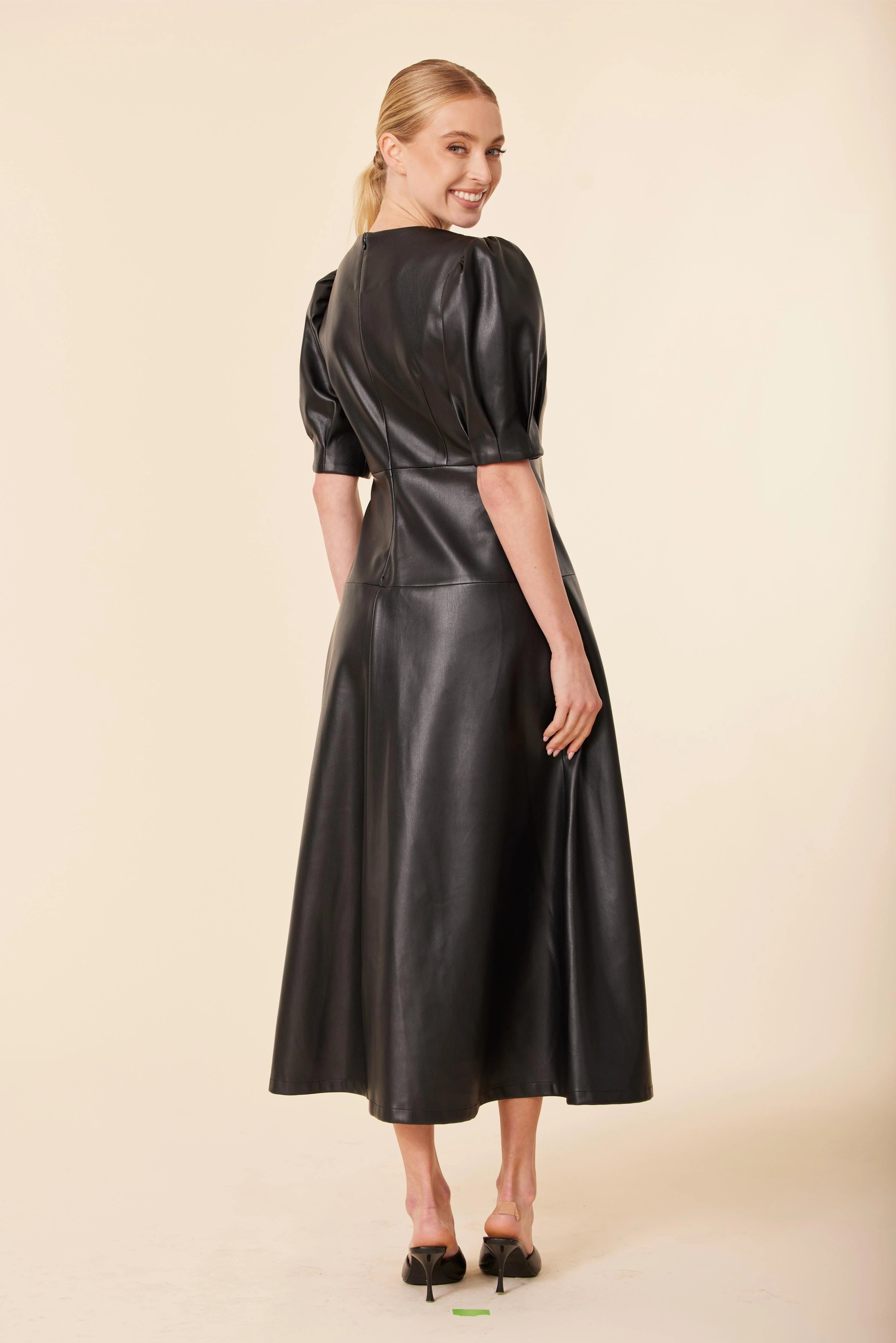 Perfect for fall weddings, cocktail parties, date nights, and holiday gatherings, this chic faux leather dress effortlessly combines modern edge with timeless elegance. Pair it with strappy heels for evening glamour or ankle boots and a tailored coat for a polished daytime look.