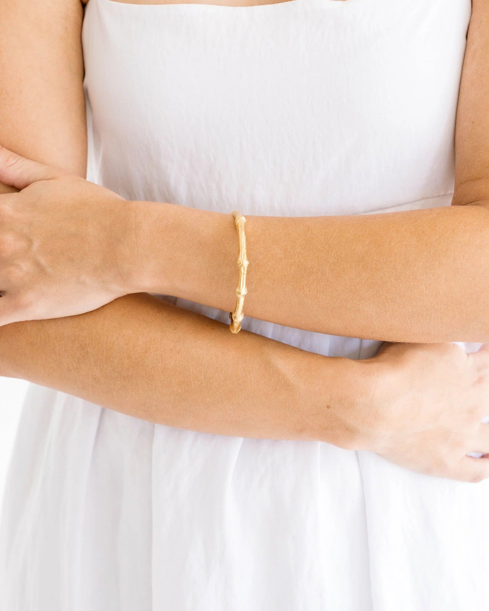 Elevate your everyday style with the Gold Bamboo Bangle by Susan Shaw — a refined take on a timeless, nature-inspired design. Its carved bamboo detailing adds subtle texture and charm, while the warm 24k triple-plated gold finish makes it versatile enough for stacking or wearing solo. Lightweight, classic, and effortlessly chic, this bracelet transitions seamlessly from casual outings to dressy occasions.