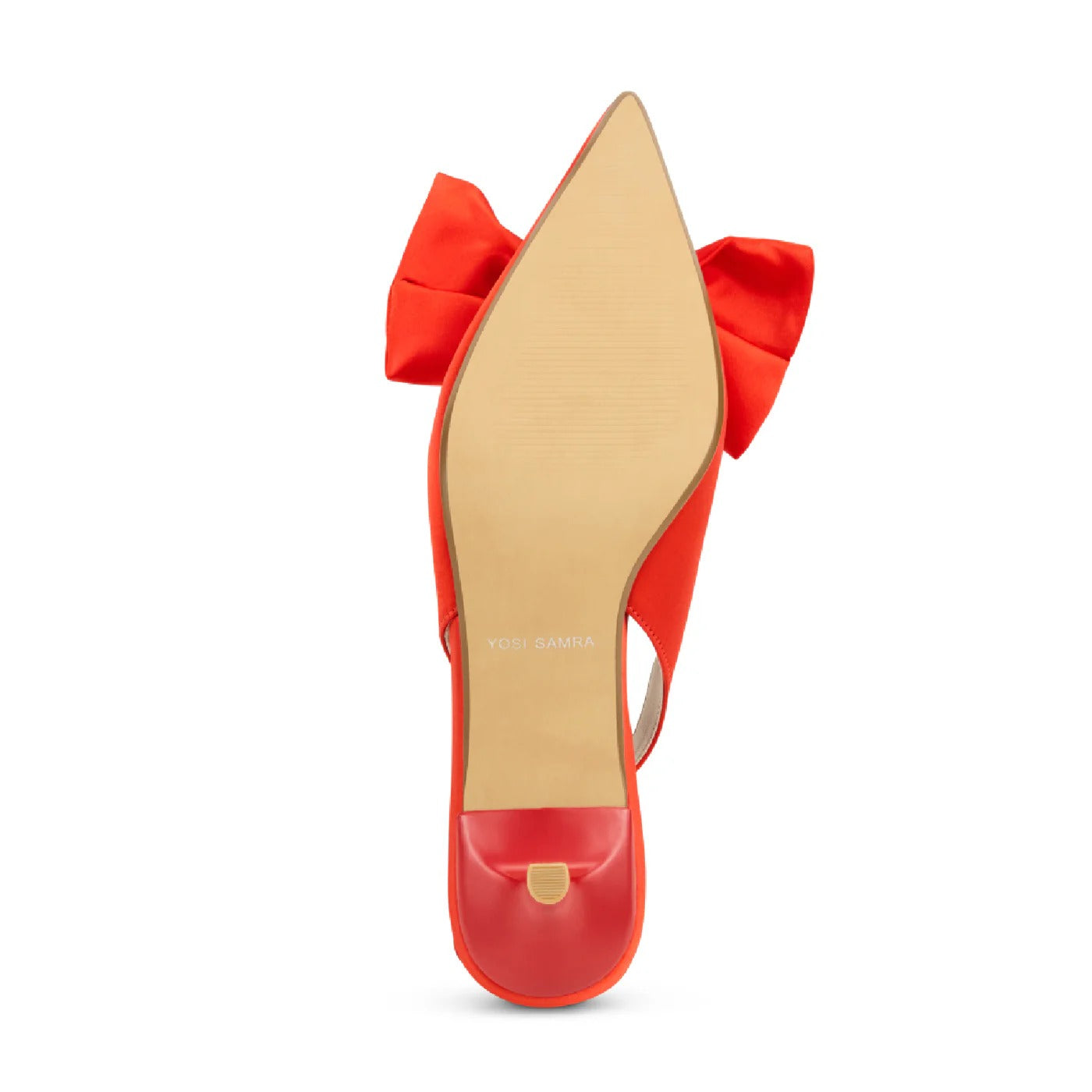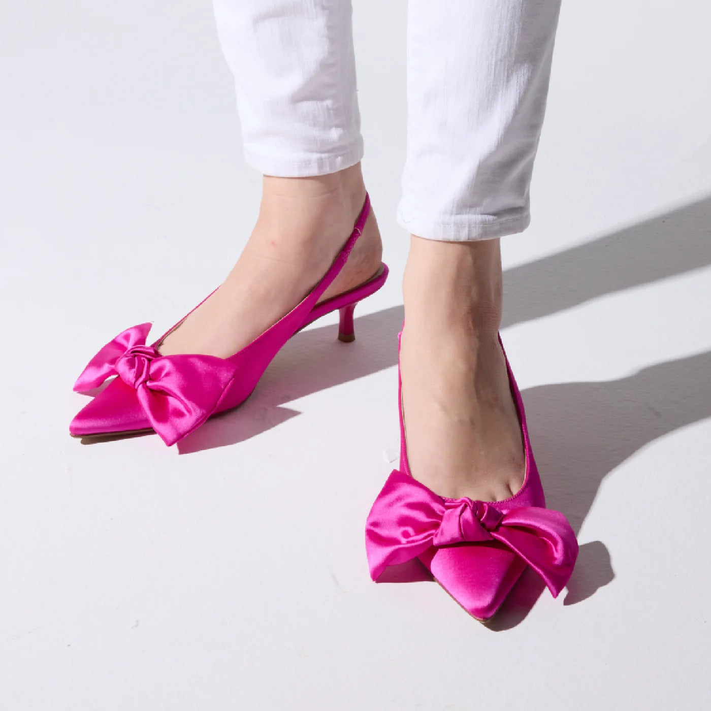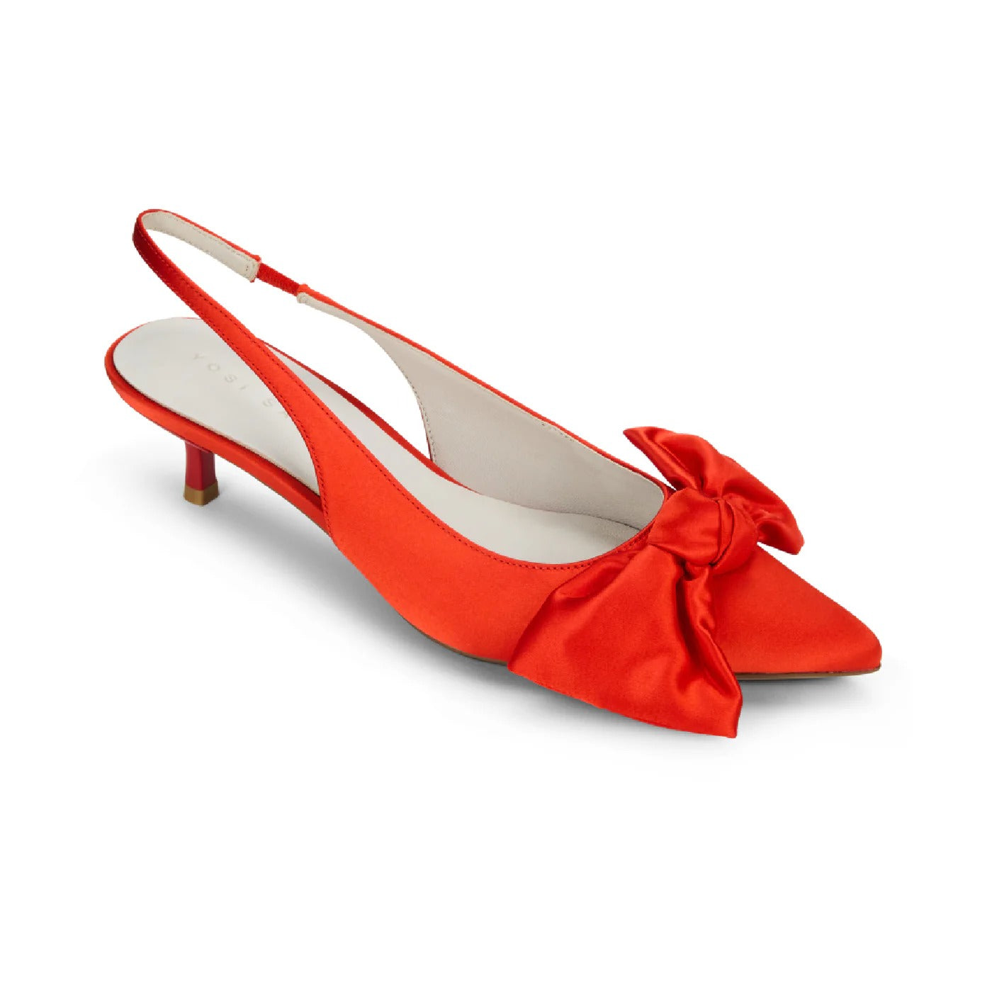 A statement in sophistication. The Elise Satin Slingback by Yosi Samra is the epitome of modern elegance, crafted from lustrous satin and finished with a sculptural bow for a timeless, feminine touch. The flattering pointed toe and graceful kitten heel make it the perfect shoe to elevate both everyday looks and special occasions.