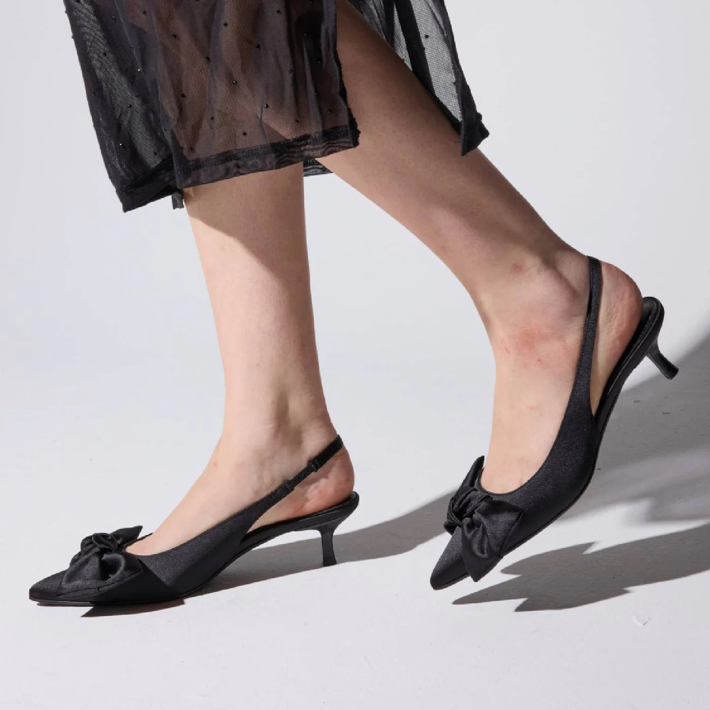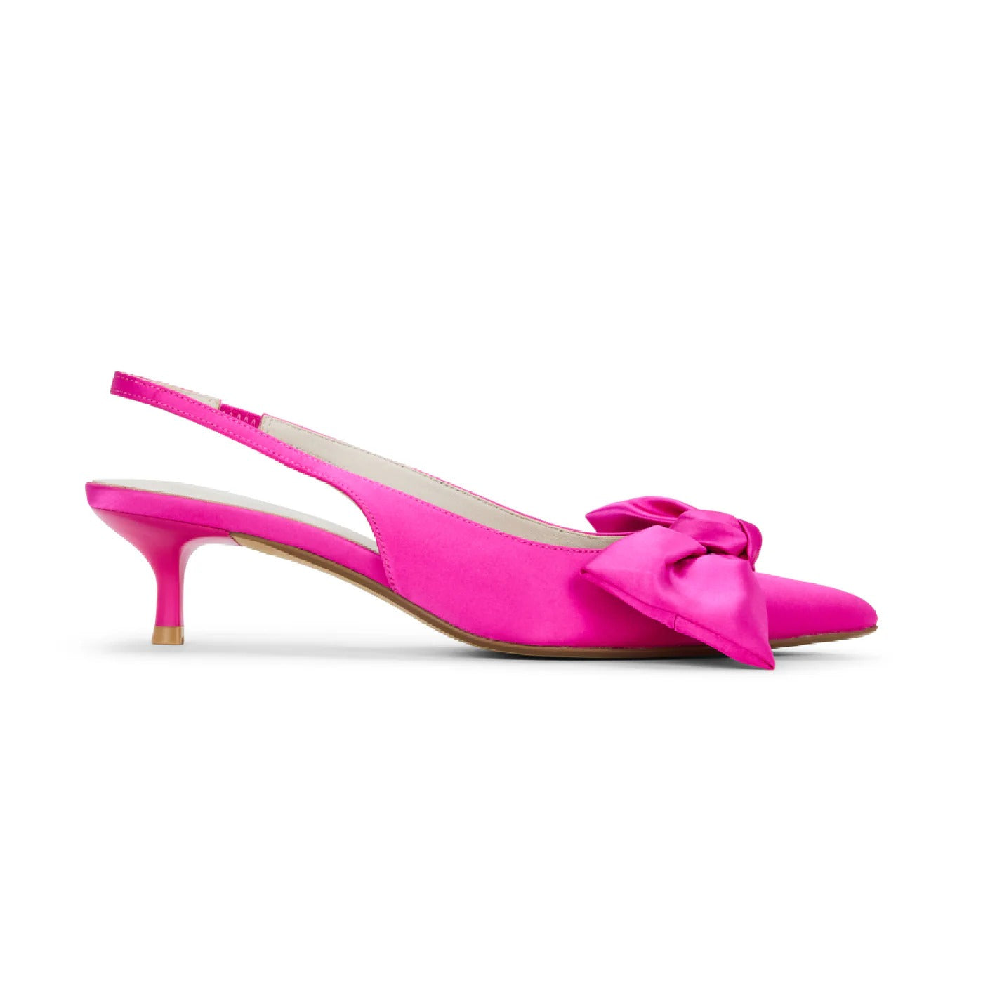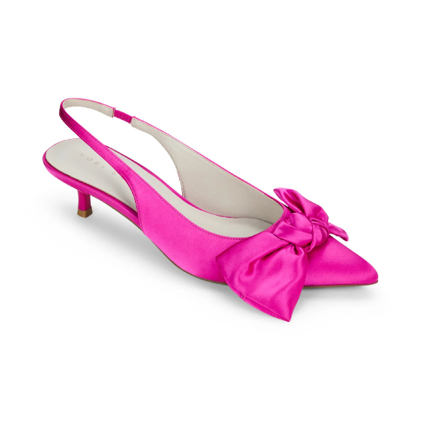 A statement in sophistication. The Elise Satin Slingback by Yosi Samra is the epitome of modern elegance, crafted from lustrous satin and finished with a sculptural bow for a timeless, feminine touch. The flattering pointed toe and graceful kitten heel make it the perfect shoe to elevate both everyday looks and special occasions.