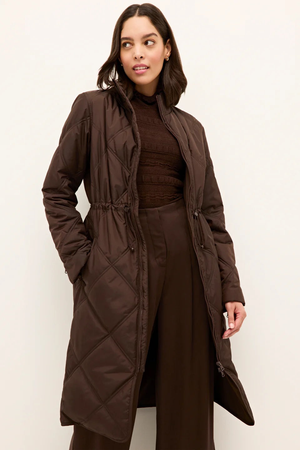 Meet the Aiden Coat by Marie Oliver—a modern take on the classic quilted jacket with an English countryside feel. Designed in a warm Walnut hue, this knee-length coat blends timeless style with elevated everyday comfort.