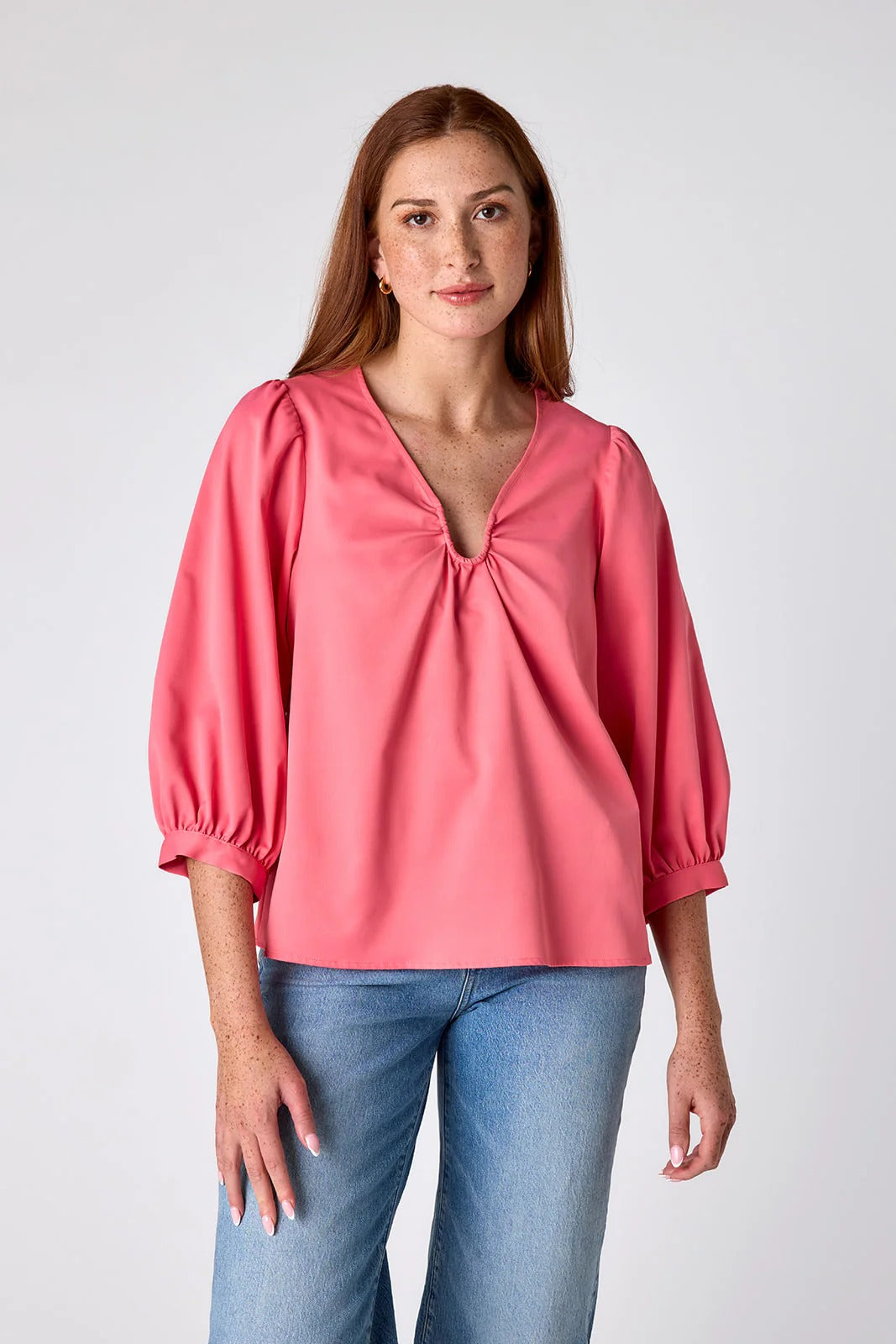 The Alexis Blouse in Wild Rose is an effortless, feminine style you’ll reach for again and again. Designed with a flowy, comfortable fit, this blouse features a wired U-shaped neckline that holds its shape beautifully and ¾-length balloon sleeves for soft, elegant volume. Crafted in a crisp Poly Taffeta with a subtle sheen, it’s the perfect blend of polish and ease. A hip-length silhouette makes it ideal for pairing with denim, trousers, or skirts.