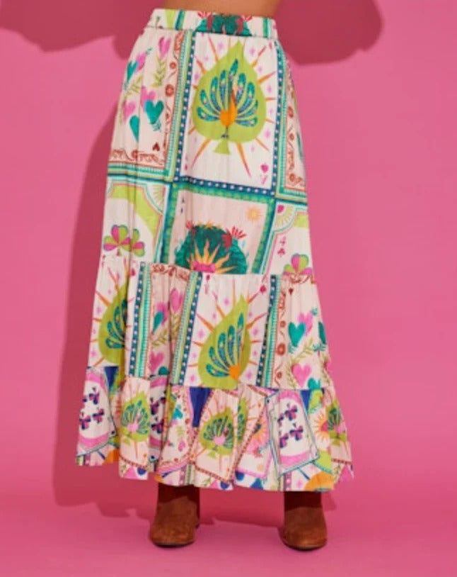 Bright, bold, and full of personality, the Amanda Skirt in High Roller is a show-stopping maxi that brings instant joy to any outfit. The colorful, graphic print makes a vibrant statement, while the flowy silhouette adds beautiful movement with every step. Designed with an easy, flattering fit and a comfortable waistband, this skirt transitions effortlessly from daytime exploring to dinner out. Pair it with a simple white tee, a fitted tank, or the matching High Roller pieces for a coordinated look that turns heads.