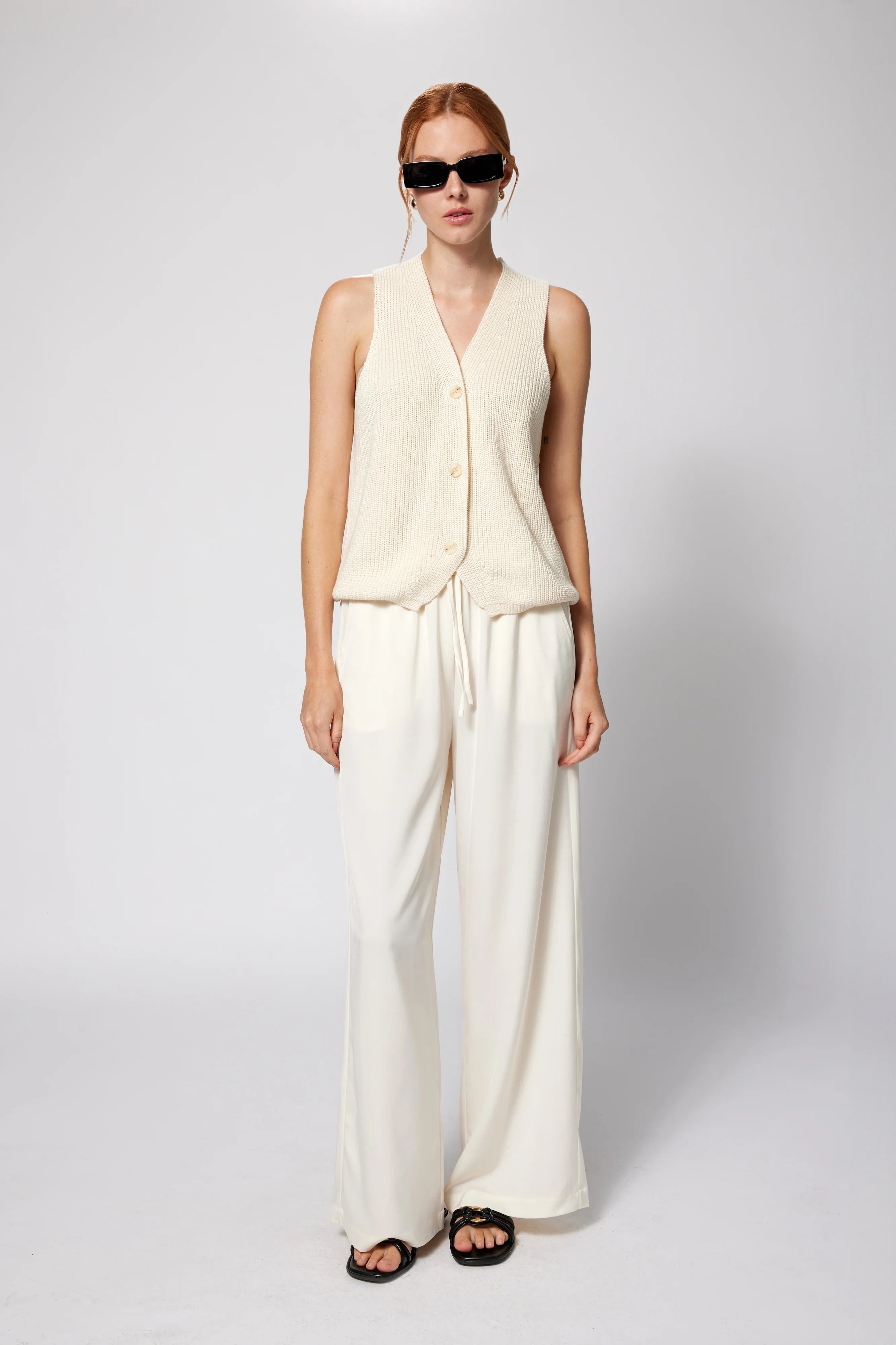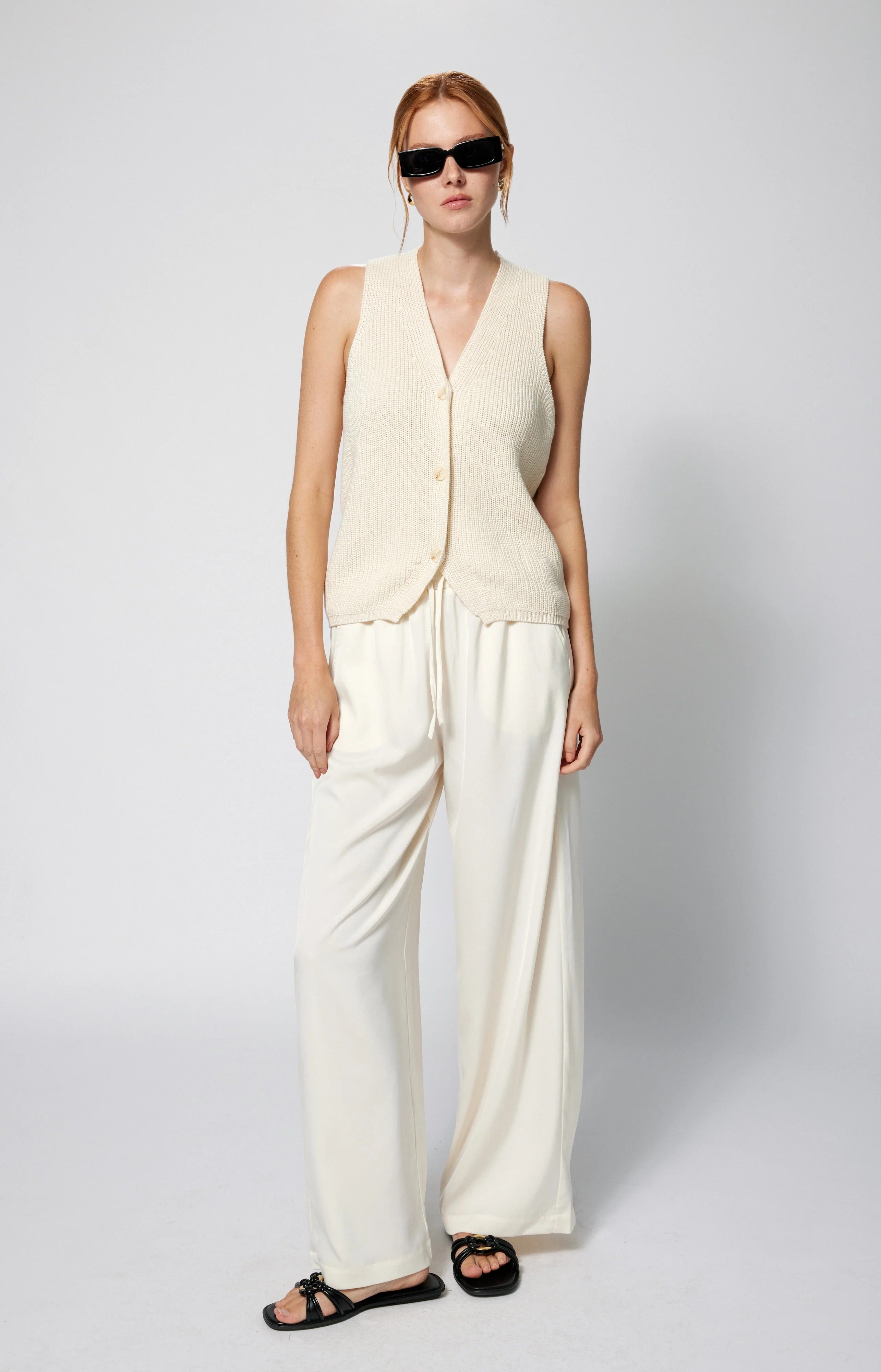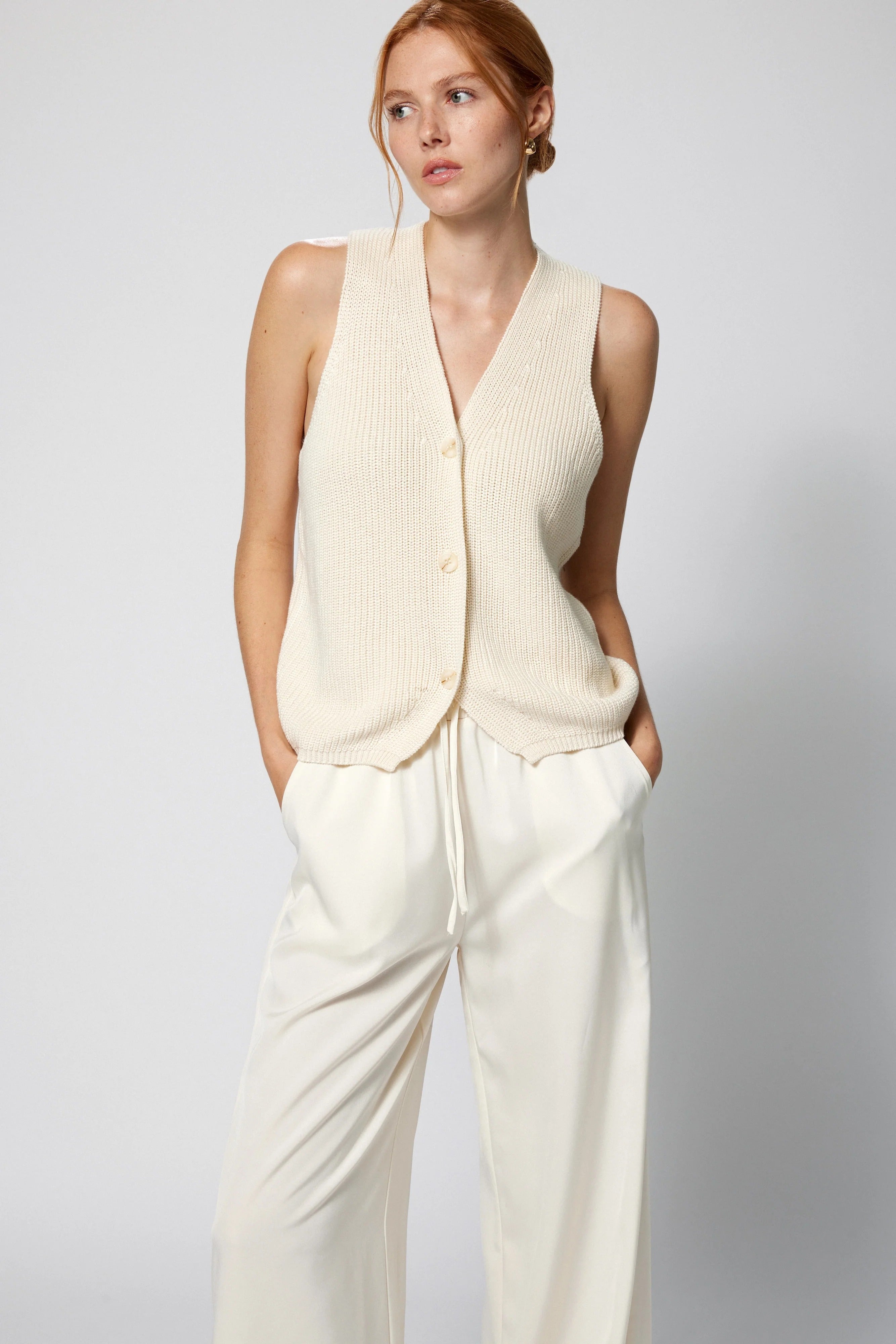 - Sleeveless knit vest silhouette